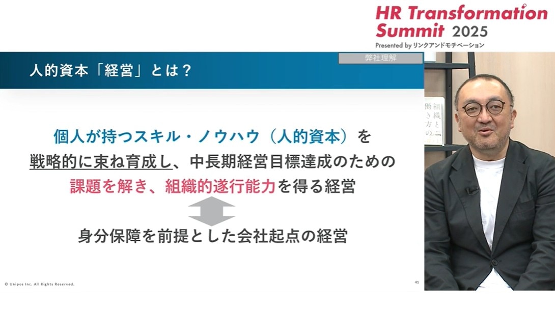 Unipos 田中氏:人的資本経営について私が問題意識を持っているのは、日本の企業は長い間、身分保障を前提とした、つまり、会社を起点とした経営を続けてきてしまったのではないかということです。