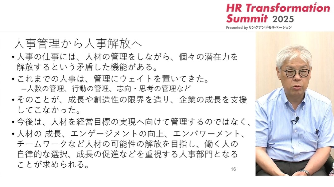 「人事管理から人事解放へ」という流れは、まったく存在しないわけではありません。IT業界などを中心に、人事OSとしてカルチャーや風土、パーパスといった心理的側面を重視する会社は増えていますし、一人ひとりの行動を管理するのではなく、解放することで企業の成長につなげていこうとする企業も生まれてきています。