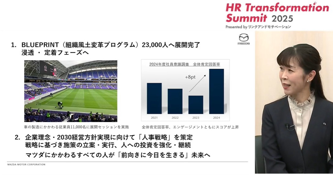 厳しい経営環境の中にあっても、人への投資は引き続き強化・継続していく方針です。組織・風土変革を継続して経営の土台を強化しつつ、この人事戦略を実現することで、マツダに関わるすべての人が「前向きに今日を生きる」未来へとつなげていきたいと思います。私からは以上になります。