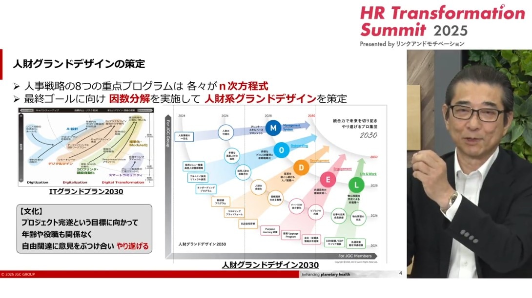 エンゲージメントに関しては、「エンゲージメントレベルを向上させるパーパスジャーニー」という取り組みをしています。これは、企業のパーパスと社員一人ひとりのパーパスをマッチングさせる試みです。当社は数年前に「Enhancing planetary health」というパーパスを再定義しましたが、これは、創業当時からの志に加えて、グローバリゼーションを進めたことや様々なプラント建設プロジェクトの浮沈も含め、複数の要素の掛け算で成り立っています。