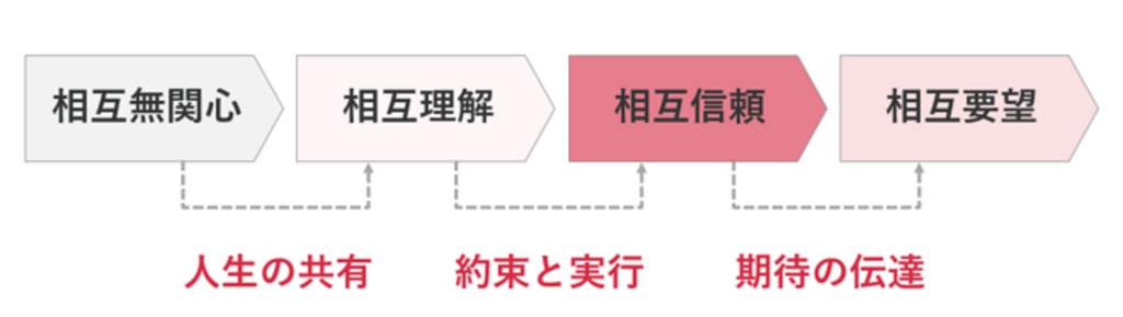 ここまでで述べてきた関係構築の4ステップの中でも、エンゲージメントの高い組織へと変革するための第一歩であり、最も重要なステップが、人生の共有による相互理解の深化です。