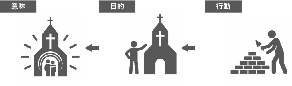 「上司からの適切な情報提供」とは、どのような情報提供なのでしょうか。上司が部下に提供する情報には、「行動」「目的」「意味」という3つの水準が存在します。この3つの水準の重要性を理解するために、よく話されるのが「3人のレンガ積み職人」の話です。ある人が、レンガを積んでいる3人の職人にそれぞれ「何をしているのか」と尋ねました。1人目は、「見ればわかるでしょ。レンガを積んでいるんだよ」と答えました。2人目は、「新しい教会を作っています」と答えました。3人目は、「村人が祈りを捧げ、心を安らげるための場所を作っています」と答えました。3人のうち、誰が最もモチベーション高く、今の仕事に向き合っているといえるでしょうか。言うまでもなく、3人目の職人だと言えます。3人の違いとしては、1人目は行動のみ、2人目はその目的まで、3人目は意味までを捉えています。